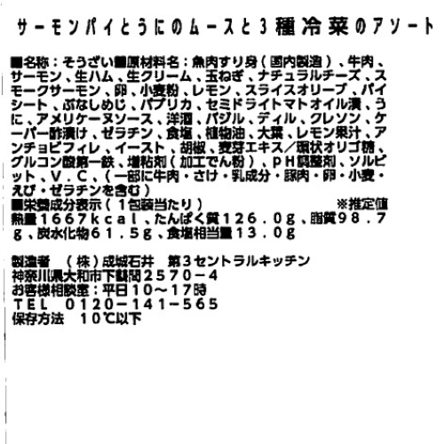 サーモンパイとうにのムースと3種冷菜のアソート_【Y-4】