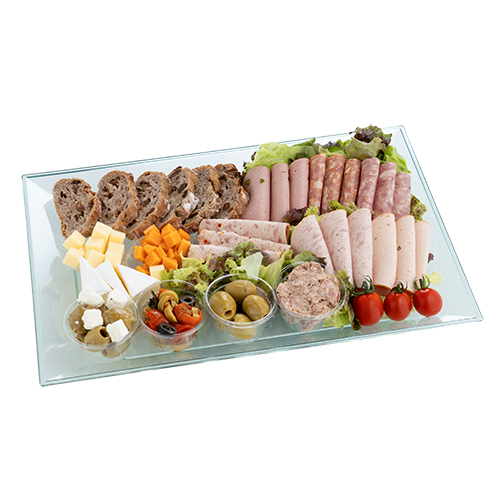 サラミ チリペッパー、サラミ プレーン、モルタデラ、ペッパーボロニア、フライッシュケーゼ、シンケンヴルスト、熟成ブリー、オランダ産ゴーダ、オリーブ・セミドライチェリートマトマリネ、フランス産ミモレット、ギリシャ産種なしグリーンオリーブガーリック、ギリシャ産種なしグリーンオリーブ&フェタ、レーズンと胡桃のカンパーニュスライス、レバーパテ